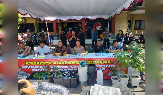 Barang bukti yang ditahan ratusan polibag dan media tanah termasuk kecambah/bibit pohon ganja siap tanam, serta beberapa pohon ganja yang sudah mencapai tinggi 1 meter, serta berbagai peralatan dan perlengkapan lainnya termasuk timbangan, untuk melakukan clandestein tanaman ganja hidroponik tersebut.