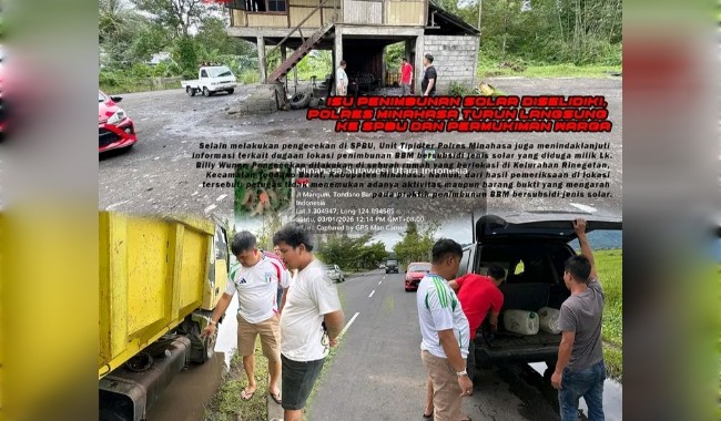 Minahasa | Menindaklanjuti isu dugaan penimbunan BBM bersubsidi jenis solar yang berkembang di tengah masyarakat, Polres Minahasa melalui Unit Tindak Pidana Tertentu (Tipidter) bergerak cepat turun langsung ke lapangan. Kegiatan pengecekan ini dilaksanakan pada Sabtu, 03 Januari 2026, sekitar pukul 12.00 WITA, sebagai bentuk komitmen Polri dalam menjaga stabilitas kamtibmas dan melindungi hak masyarakat atas BBM bersubsidi.