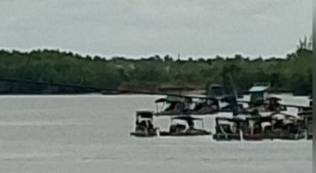 Dari pantauan Awak media Rabu (20/08/2025) WIB terlihat aktivitas tambang apung beraktivitas Daerah Aliran Sungai (DAS) Jembatan perimping.